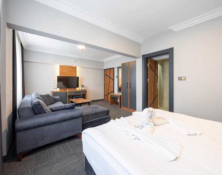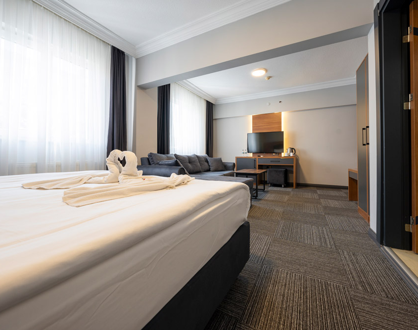 Maltepe Manhattan Otel’in suit odaları, lüks ve konforu bir arada sunarak misafirlerine özel bir konaklama deneyimi yaşatmak için tasarlanmıştır. Geniş yaşam alanları, modern dekorasyon detayları ve premium hizmetlerle donatılmış bu odalar, özellikle uzun süreli konaklamalar veya özel anlar için ideal bir seçimdir. İş seyahati yapanlar için çalışma alanı sunarken, aileler ve çiftler için de rahat bir atmosfer sağlar.